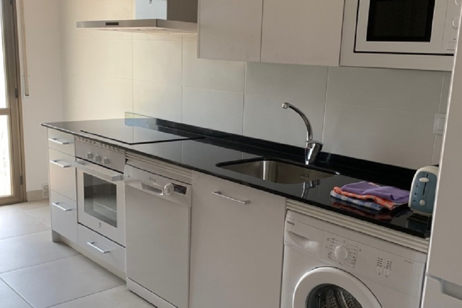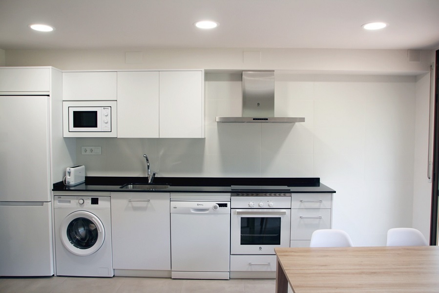 • En la cocina hay lavadora, lavavajillas, microondas, tostadora, batidora, cafetera, plancha, menaje y lencería.