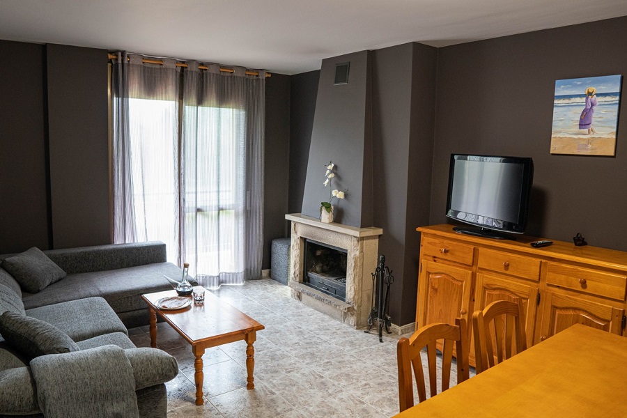 • Todos los apartamentos disponen de hogar de leña en el salón y en la terraza.
