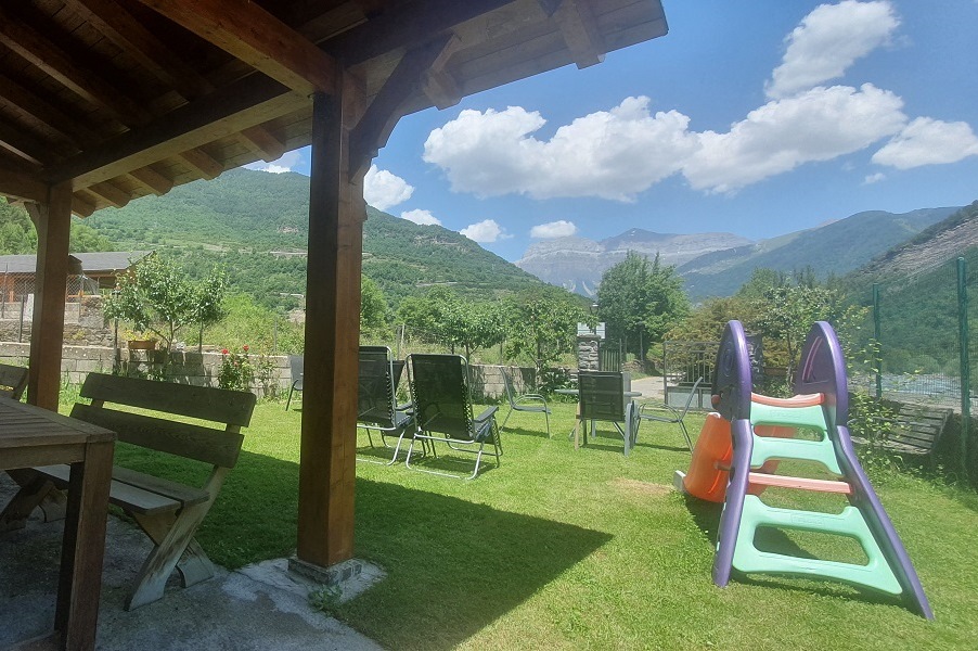 La casa está situada en el casco antiguo de Broto, junto al camino tradicional que subía a Torla. Es la zona más tranquila del pueblo, con amplios espacios donde los niños pueden jugar sin peligro.
