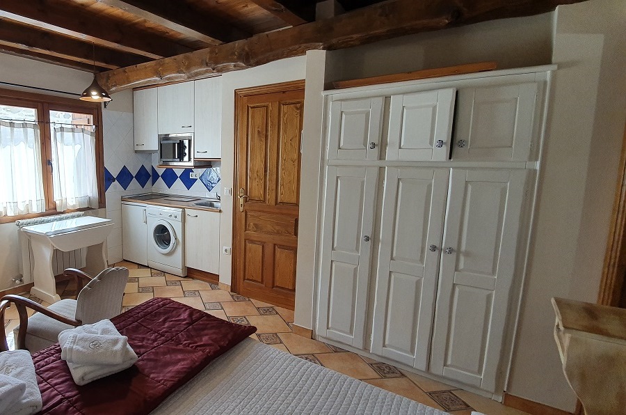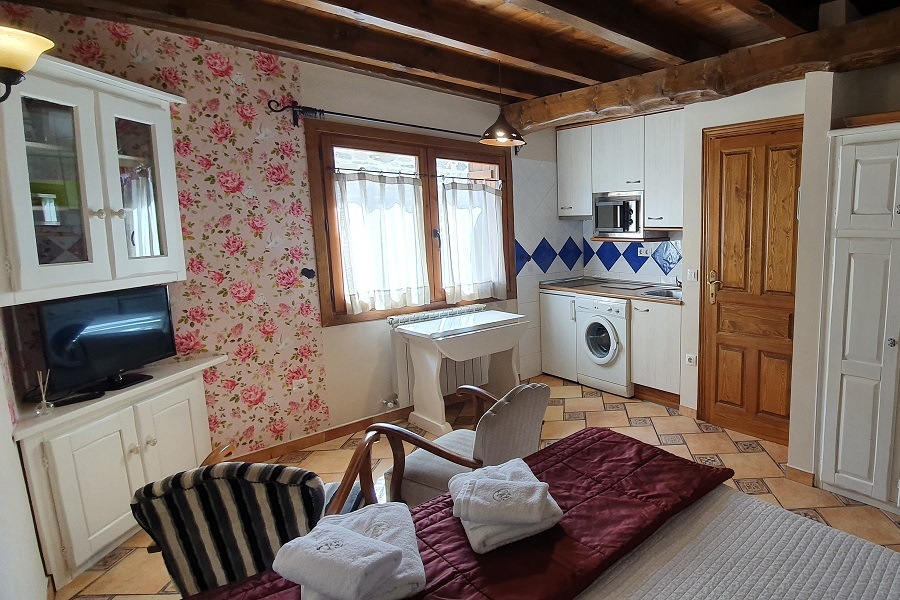 Frente a la Borda está la casa de los Apartamentos Lizonero; con 2 apartamentos dúplex de 4 a 6 plazas y dos estudios con cocina de 2 plazas cada uno y de planta baja.