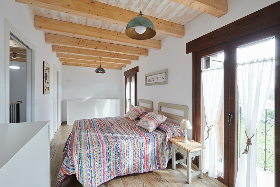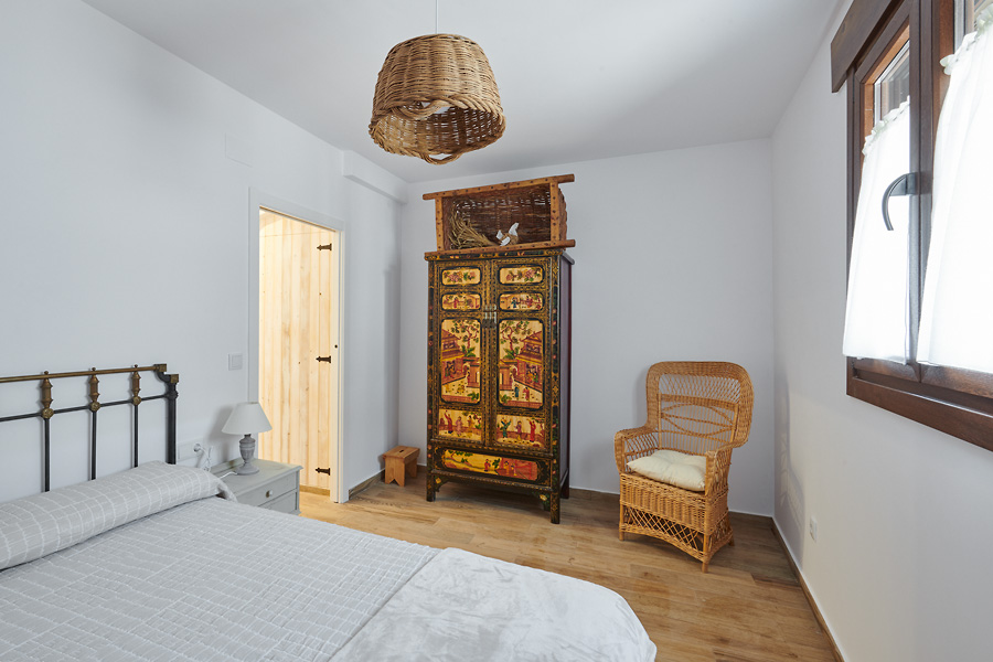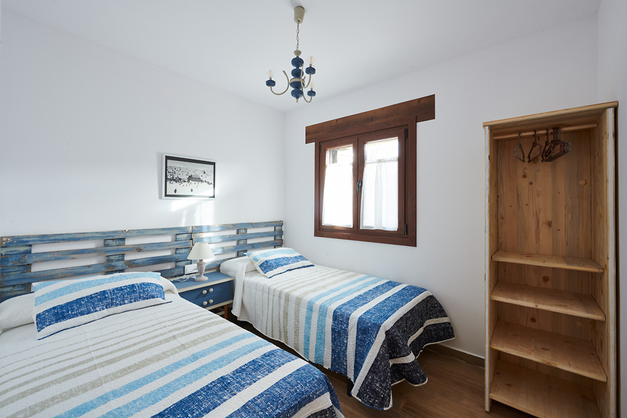1ªplanta: 1 habitación con 2 camas individuales, 2 camas supletorias adicionales (mueble-cama) la habitación es amplia con dos balcones y muy luminosa. Segunda habitación de la planta primera con cama de matrimonio y balcón. 1 baño completo con ducha.
