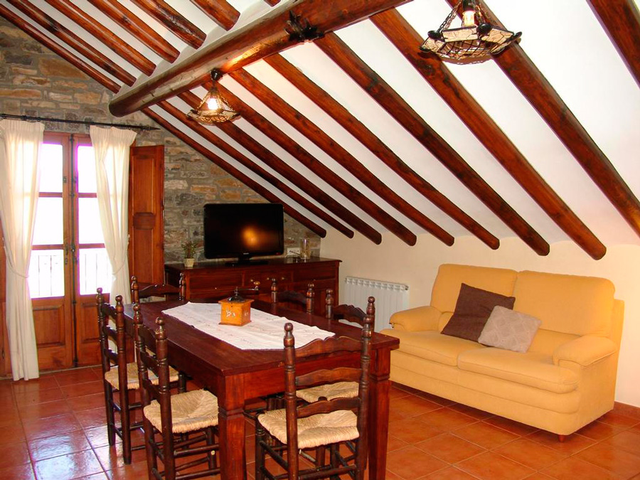 Apartamento duplex, abuhardillado con capacidad para 4 personas. En la primera planta dispone de cocina comedor con TV y chimenea, una habitación doble y 1 baño. En la segunda planta hay una habitación doble, una sala de estar y 1 baño.