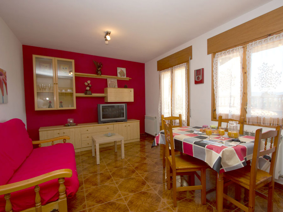 En el comedor tienen un pequeño balcón con vistas a la montaña mítica y mágica de El Turbón, todas las estancias tienes ventanas al exterior y luz natural.