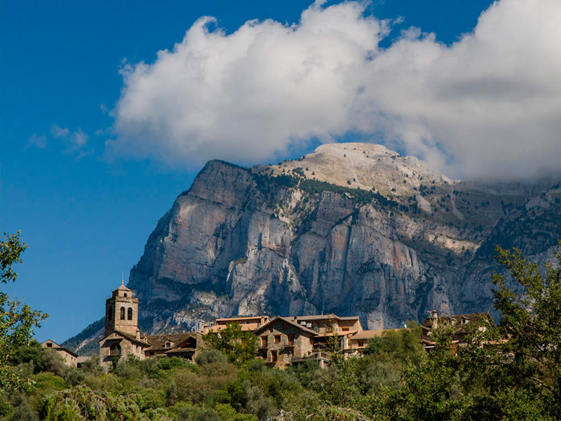 El pueblo ha sabido conservar el especial encanto que marcaron en siglos pasados sus habitantes y los monjes que, en su trayecto al antiguo monasterio de San Victorián (S.VI) hacían su parada habitual en este núcleo para meditar y transmitir su cultura. Los vecinos de esta localidad, que en su día estuvo fortificada para protegerse del enemigo, han rehabilitado sus casas respetando las construcciones y el entorno del Pirineo.