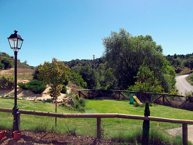 En el exterior de la casa, dispone de una zona de jardín orientada al noreste, situado en la parte delantera de la casa. Además en la parte trasera de la casa, el jardín orientado al sur, donde se encuentra la piscina, la zona de la barbacoa y la bodega.
