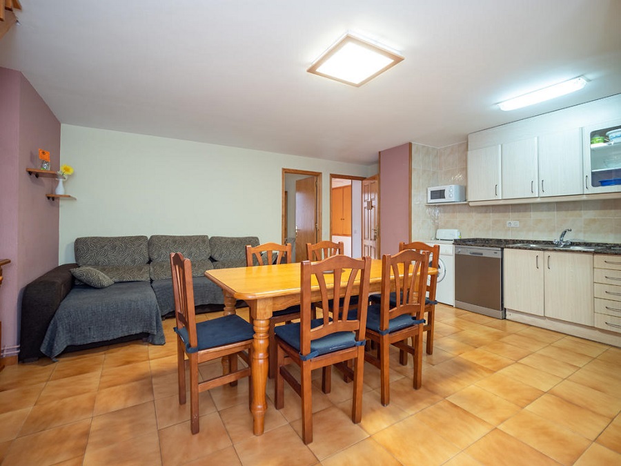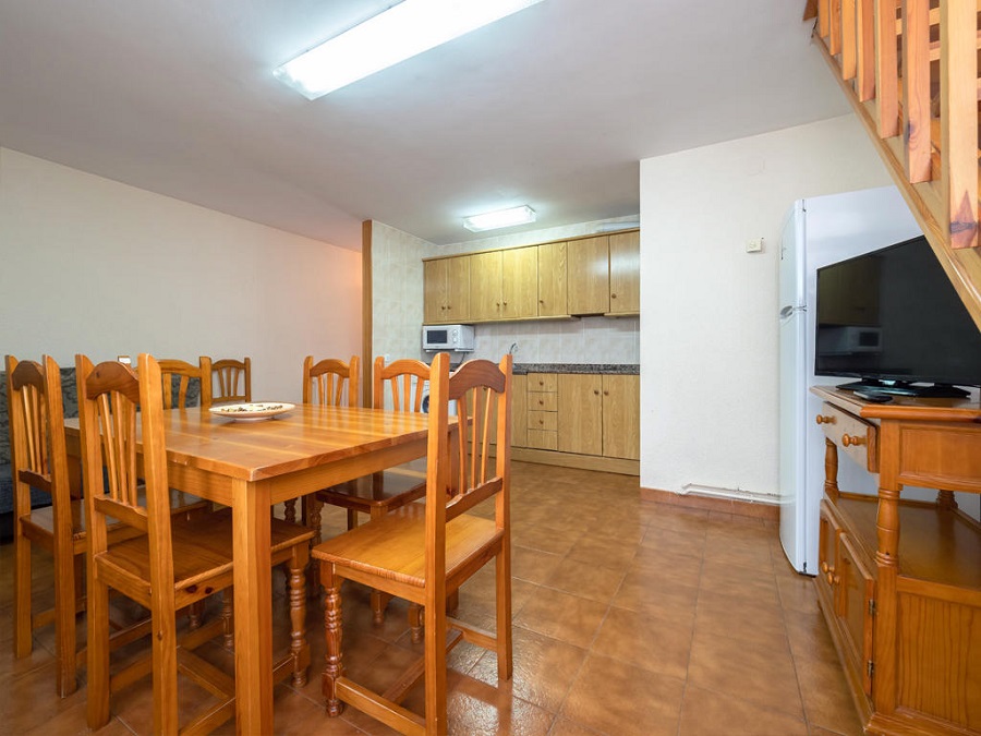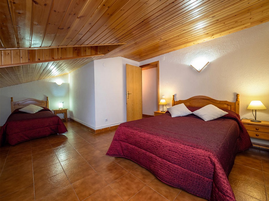 Apartamento Aneto en Casa Quintana: capacidad hasta 5 personas. Este alojamiento es tipo dúplex con cocina comedor y una habitación individual, en la primera planta. La cocina está completamente equipada y dispone de cafetera italiana, tostadora y microondas. En la segunda planta del apartamento está el baño, una habitación con 2 camas individuales y otra, con una cama de matrimonio (135cm).