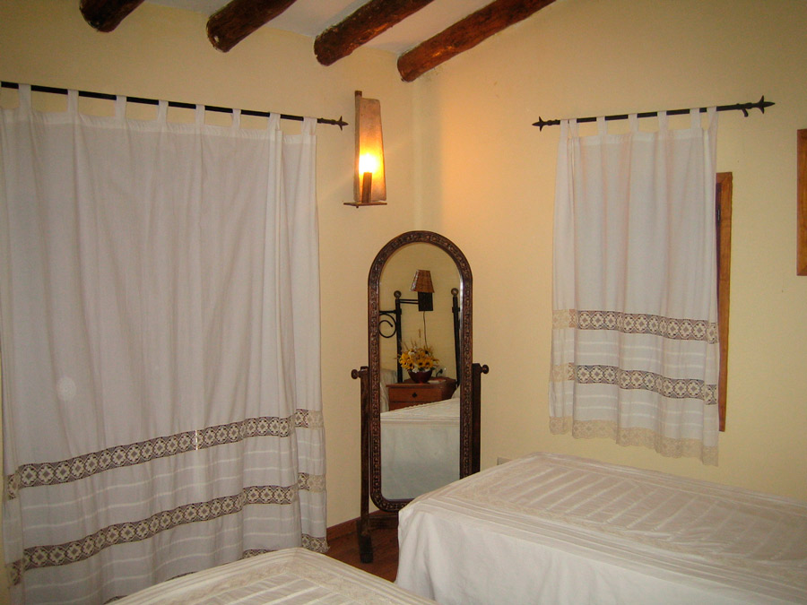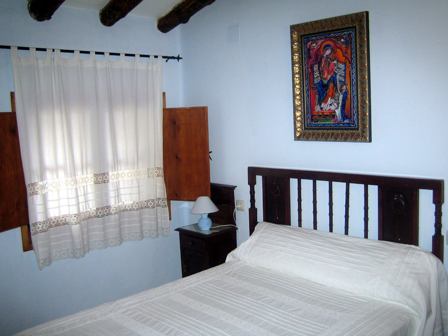 La casa tiene una capacidad de 6 plazas, consta de 3 habitaciones, 2 dobles y una de matrimonio. Cada habitación tiene su cuarto de baño privado, aire acondicionado y calefacción. Cada una de ellas está decorada de manera diferente y el techo es de vigas de madera.