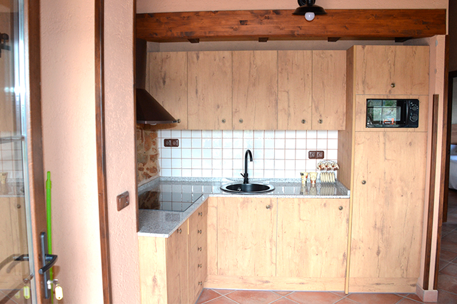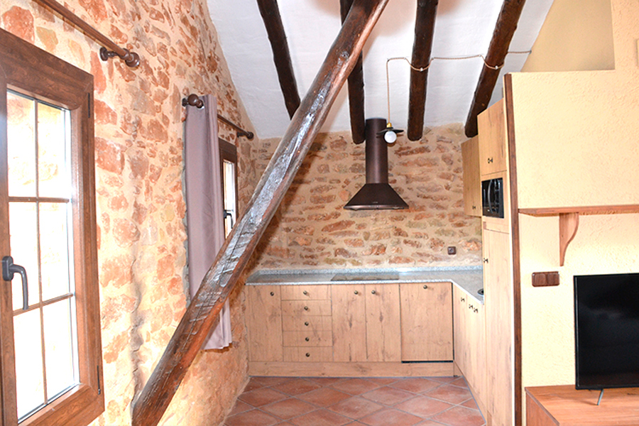 • Apartamento El Paller. Casa de dos plantas con capacidad para 4 a 6 personas. En la primera planta encontramos un amplio salón-comedor con hogar de leña, cocina y aseo. En la segunda planta, 1 habitación de matrimonio con baño completo (ducha) y 1 habitación de dos camas individuales con baño completo (ducha). En la entrada, una coqueta terraza con mesa y sillas.