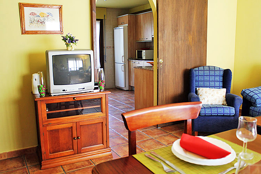 Para aquellas familias o grupos de amigos que deseen pasar un rato agradable reunidos al calor del fuego o preparar una comida grupal o cualquier tipo de celebración, dispone de un gran salón rural, se trata de una acogedora sala con paredes de piedra y techos con vigas de madera, la cual consta de un amplio comedor con chimenea y televisión, zona con sofás y un aseo. Además se complementa con una cocina independiente totalmente equipada.