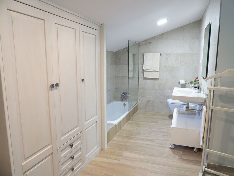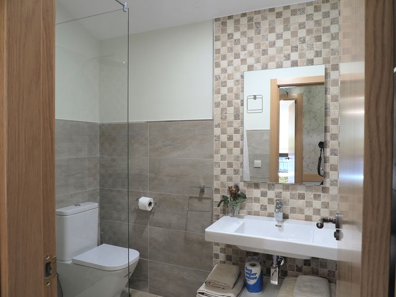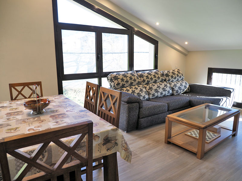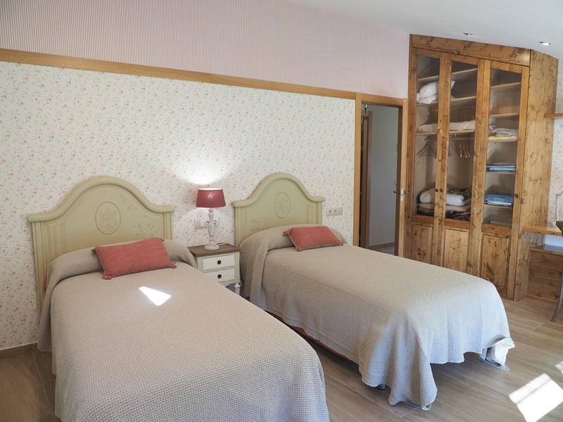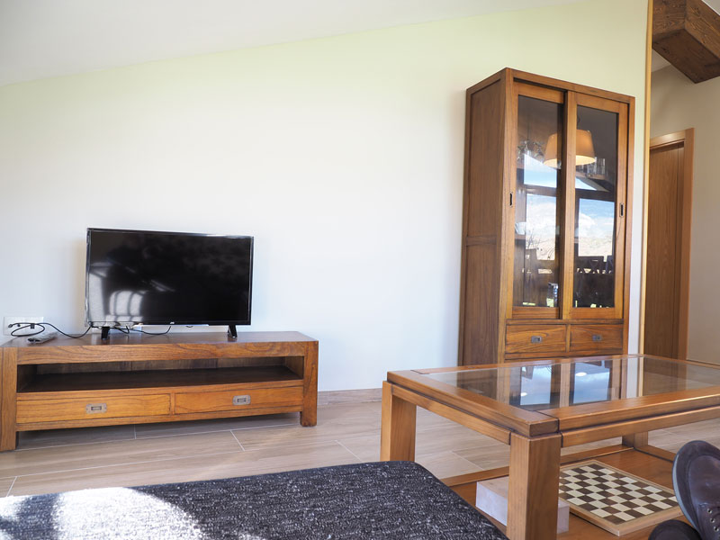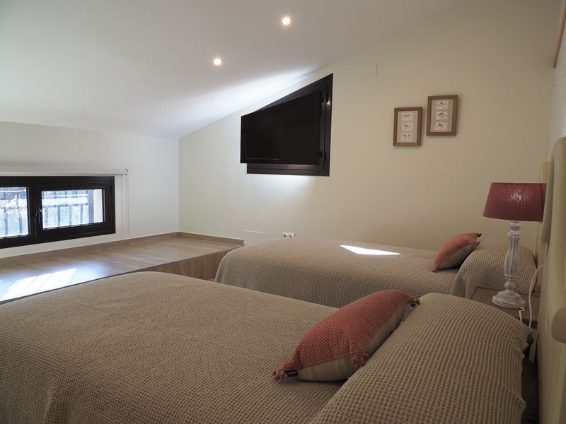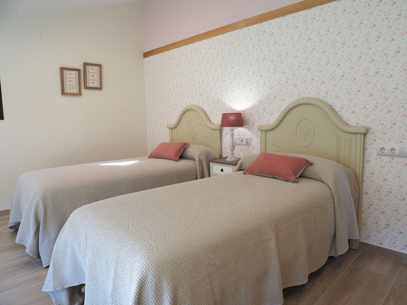 Dos dormitorios, uno con cama de matrimonio y otro con 2 camas (en este es posible una cama supletoria). Cocina, salón comedor y dos baños, uno de ellos en el dormitorio de matrimonio con bañera y otro aislado con plato de ducha.