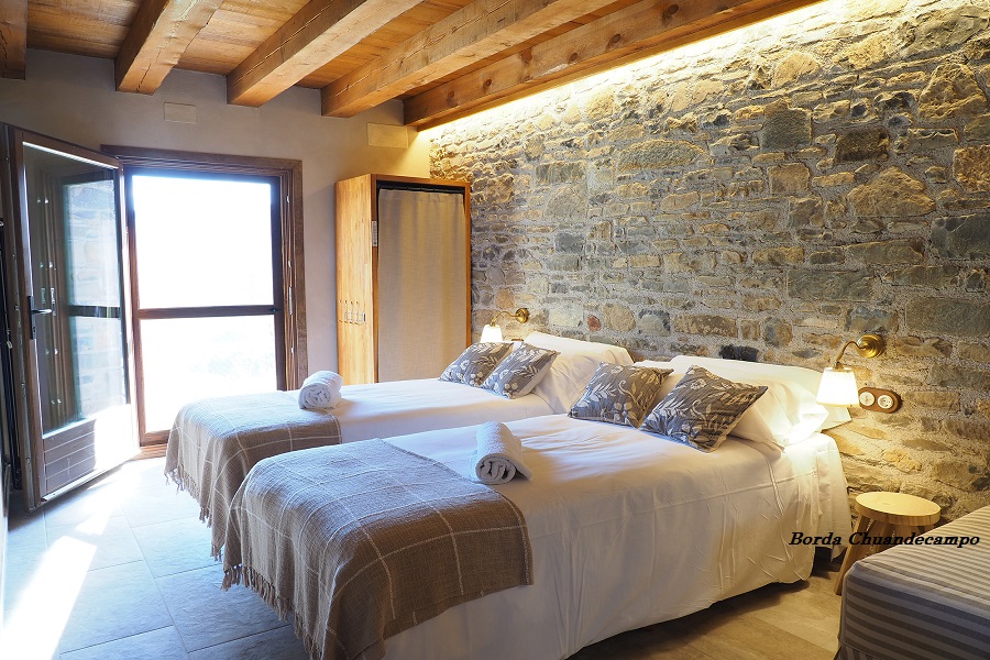 Borda de Blas y Borda Chuandecampo con 4 plazas cada una y distribuidas en dos plantas, con acceso cada una de ellas desde el jardín que rodea las casas.