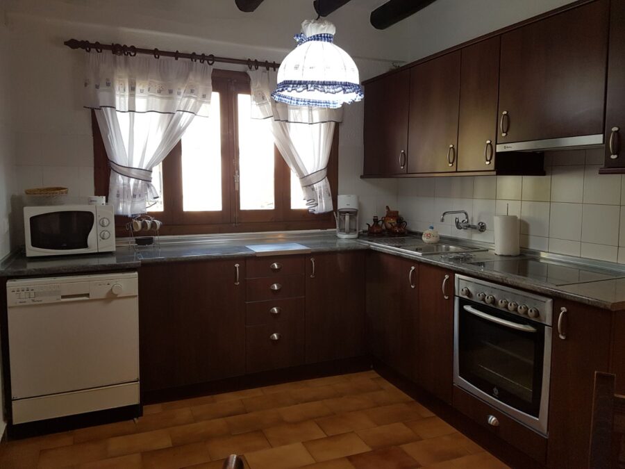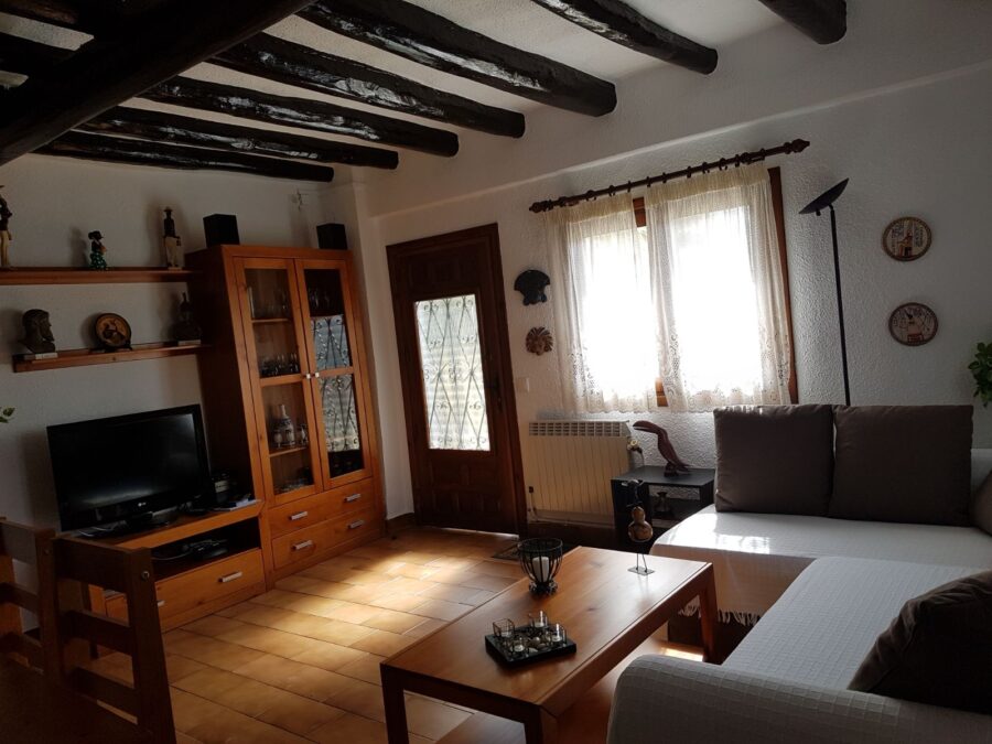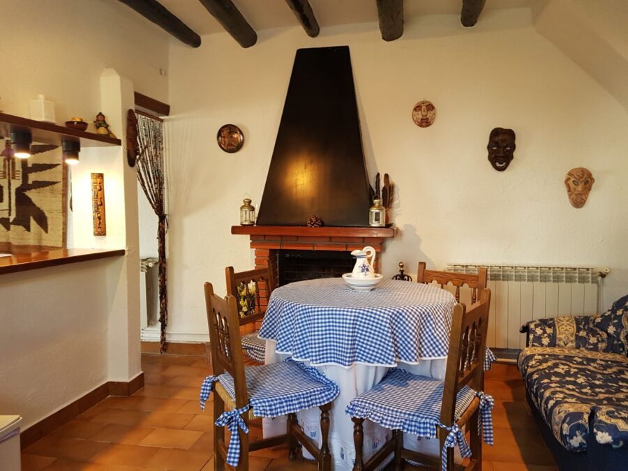 Dispone de 1 habitación de cama de matrimonio, una habitacion doble (2 camas de 90 cm.), una sala de juegos con una cama supletoria, cocina, salón comedor con chimenea y 1 baño.