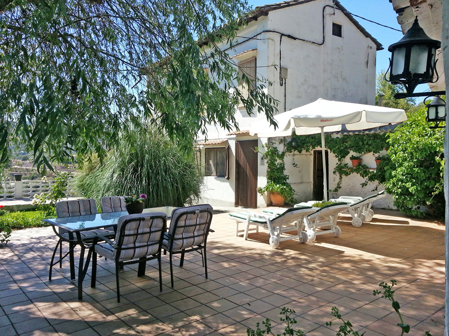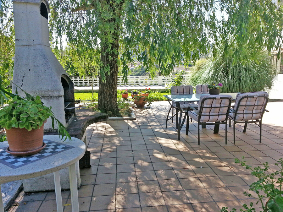 La casa está rodeada de jardín, de 400 m2., cerrado,  con amplia terraza que dispone de barbacoa, mesas, sillas y tumbonas, ideal para familias con niños, para jugar, leer, comer o simplemente relajarse.