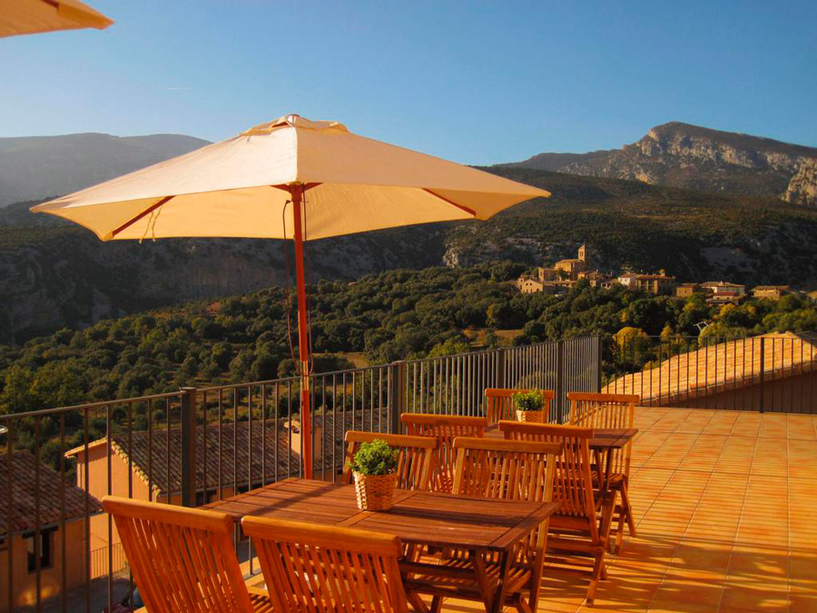Todos disponen de terraza o porche con vistas al Valle de Rodellar. La panorámica es impresionante; el cañón del Mascún en su desembocadura con el río Alcanadre, el pueblo de Rodellar, el Tozal de Guara, un paisaje tranquilo y espectacular en el corazón de la Sierra de Guara. Cada apartamento tiene al lado parking gratuito para un vehículo.