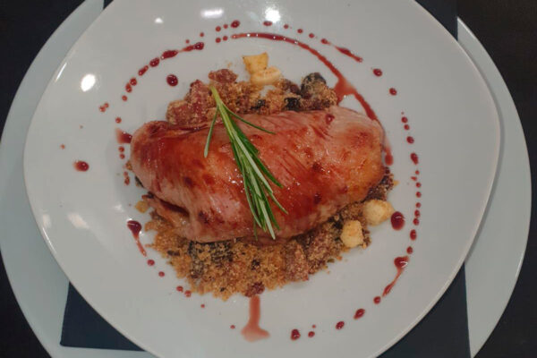Puedes degustar platos como: caldereta aragonesa de conejo, ensalada de tomate rosa de Barbastro y ventresca de atún, calçots a la brasa, boliches del Pilar con su compango, alcachofas en salsa de jamón, trucha asalmonada del Cinca en caldo corto de jamón de Teruel, jarrete de cordero al horno con patatas panadera, migas aragonesas con huevo y longaniza de Graus, ciervo de la Sierra de Guara guisado a la garnacha…