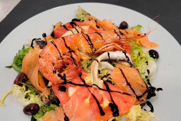 Puedes degustar platos como: caldereta aragonesa de conejo, ensalada de tomate rosa de Barbastro y ventresca de atún, calçots a la brasa, boliches del Pilar con su compango, alcachofas en salsa de jamón, trucha asalmonada del Cinca en caldo corto de jamón de Teruel, jarrete de cordero al horno con patatas panadera, migas aragonesas con huevo y longaniza de Graus, ciervo de la Sierra de Guara guisado a la garnacha…