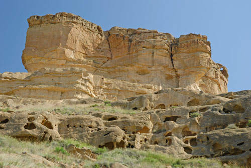 La estepa monegrina tiene uno de sus principales símbolos en los «torrollones«, montículos creados por la erosión de los siglos, del viento y de las lluvias en unos sedimentos que hace ahora millones de años fueron el lecho del mar.
